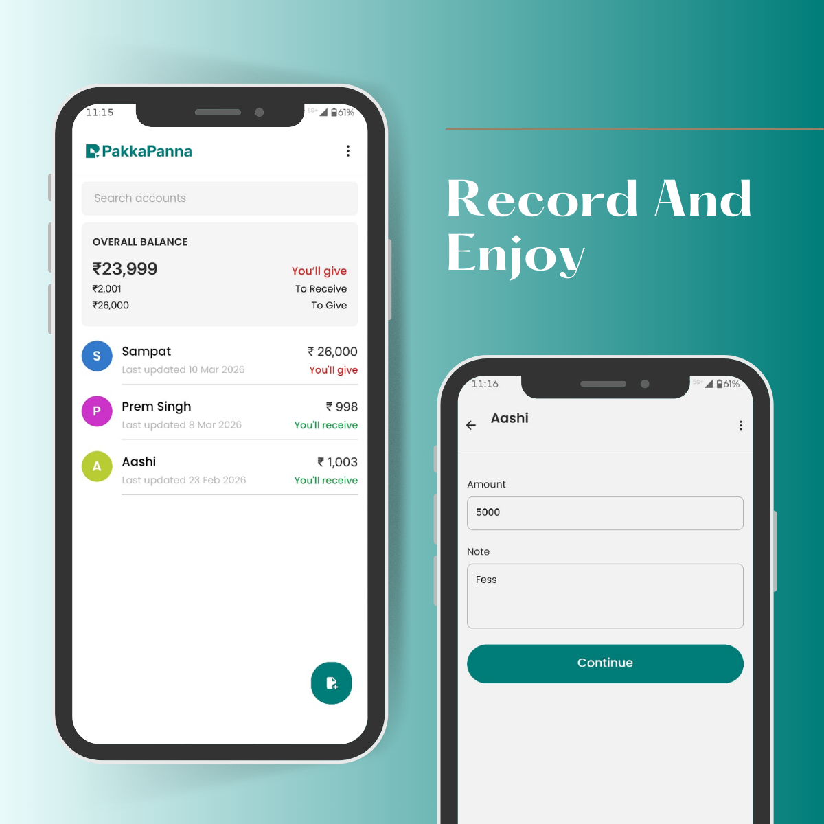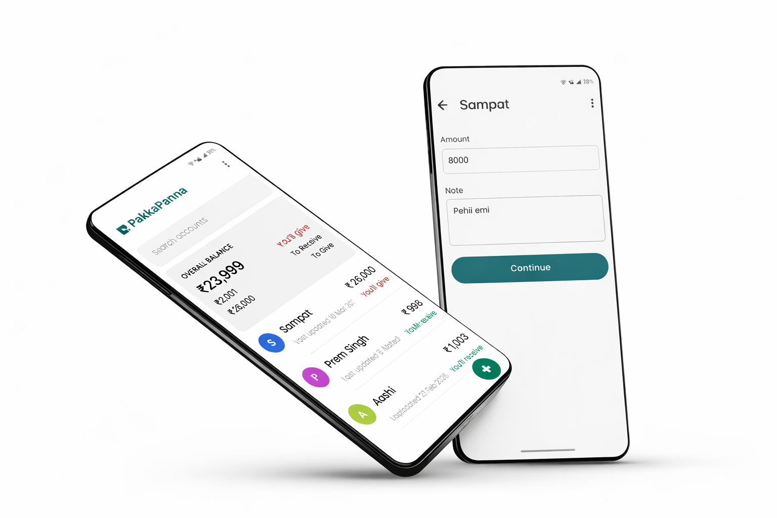 PakkaPanna is a simple digital ledger to track money given and received — with friends, family, and business contacts.